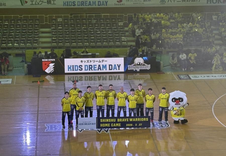 令和8年2月27日(金曜日)、ホワイトリングで行われた信州ブレイブウォリアーズvsライジングゼファー福岡戦において、「キッズドリームデー」を開催しました。